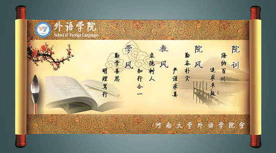 在全院师生的共同关注和参与下,外语学院从2012年百年校庆期间便开始了学院“院训、院风、教风、学风”表述语的总结凝练工作。2014年初,在广泛征集全院师生、广大校友的意见建议的基础上,梳理出三种入围方案,再聘请专家进行审议、讨论,到最后公布候选方案,接受全院师生和广大校友的投票和选择。