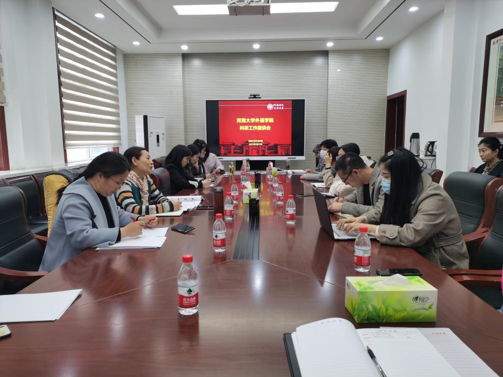 姜玲首先介绍了各科研机构及负责人,然后就人事分配制度改革的岗位职责和职称晋升条件强调了科研工作的重要性。她通报了外语学院2020年科研工作总结,旨在找差距,查不足;介绍了2021年科研工作计划,并就党委巡察的要求,提出科研整改措施;最后规范了外出开会申请流程。姜玲提议大家从学院科研管理、科研机构运行和个人科研能力提升方面提出建议和意见,畅所欲言进行讨论。