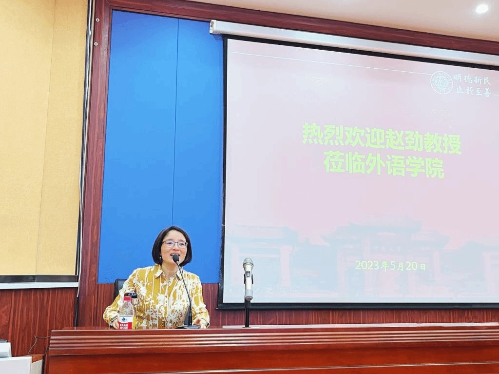 5月20日上午,教育部大学外语教学指导委员会副主任委员、德语组组长,同济大学外国语学院赵劲教授,应邀在外语学院北楼二厅做题为“朴素和忠实:洪堡的翻译思想”的学术讲座。活动由外语学院德语系主任张晓晖副教授主持,德法翻译系党支部书记丁岚副教授、德语系全体师生积极参与,共同聆听。