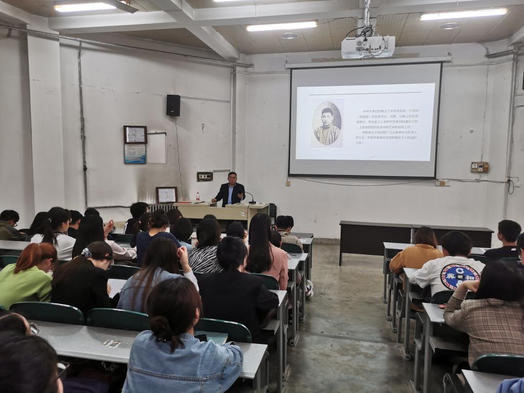 为深入开展党史学习教育,全面提升外语学院学生党员的政治素质和党性修养,教育引导学生党员们做到学史明智、学史增信、学史崇德、学史力行,2021年4月15日下午,我院在北楼五厅召开了党史学习教育宣讲会,邀请河南大学文化产业与旅游管理学院副院长张召鹏主讲。会议由外语学院党委副书记马晓静主持。