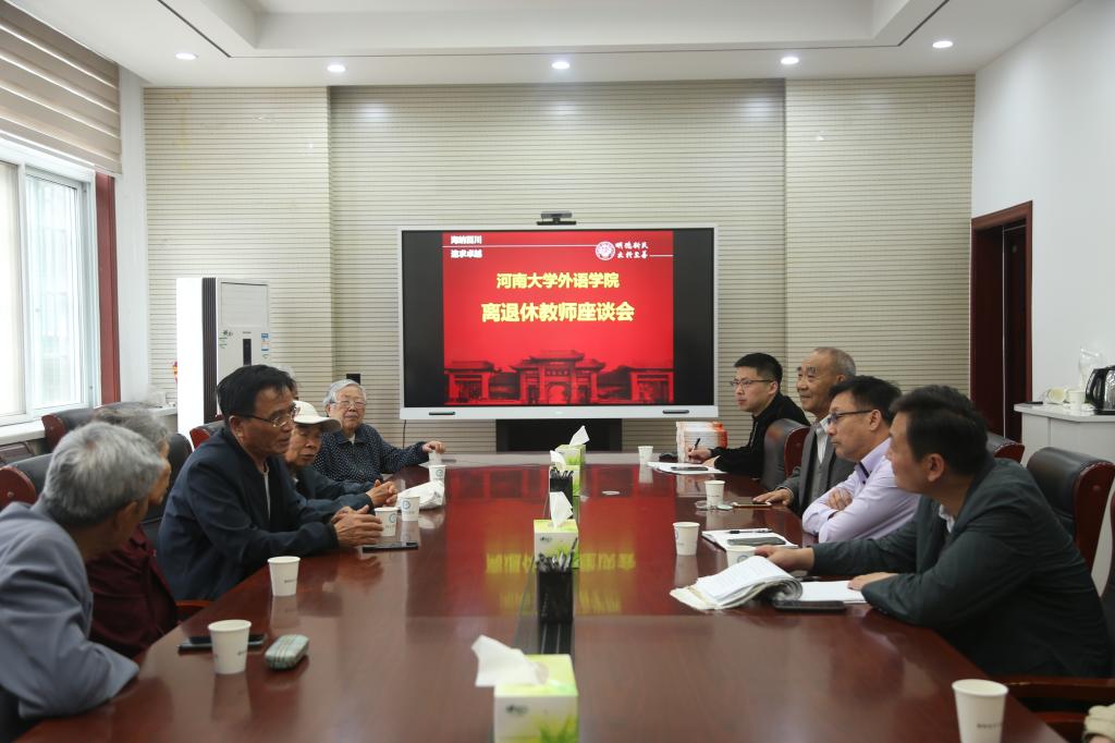 5月19日上午,外语学院离退休教师座谈会在南楼一楼会议室召开,十余名离退休教师代表参加了座谈交流,学院党委书记安家亮,副院长赵涛涛出席座谈会,座谈会由赵涛涛主持。