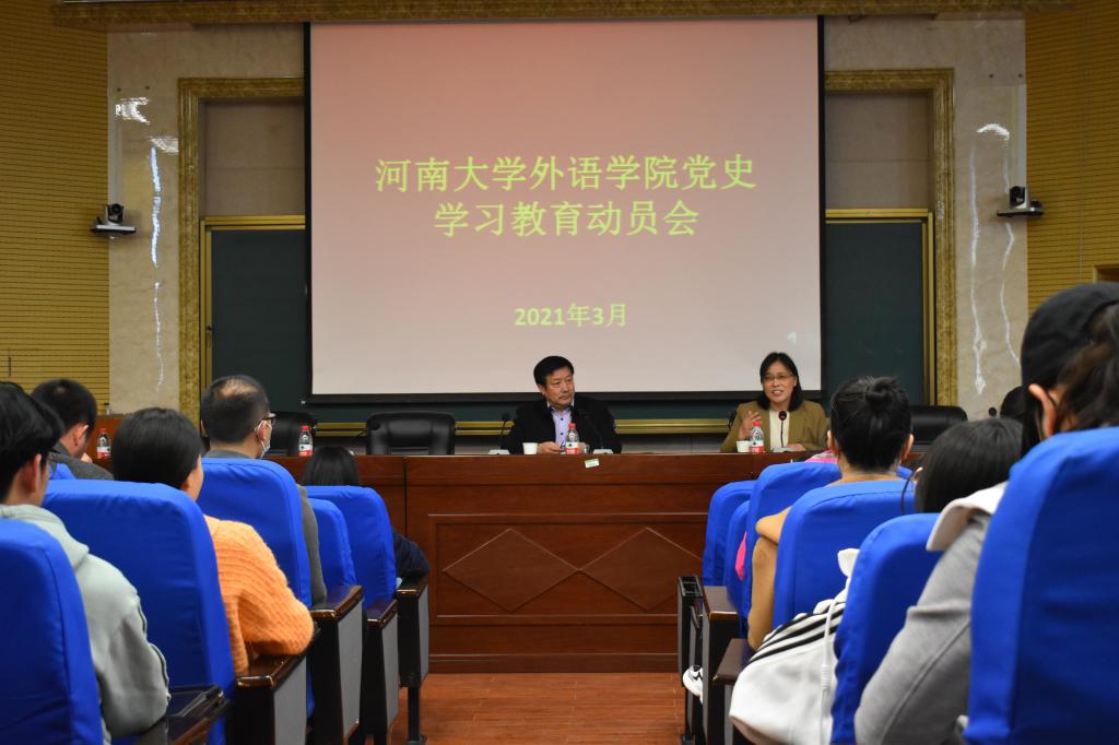 为深入贯彻习近平总书记在党史学习教育动员大会上的重要讲话精神,3月25日下午,外语学院在北楼三厅召开党史学习教育动员会。学院党委书记安家亮及全体党委委员出席会议,外语学院全体师生党员参加会议。会议由院党委副书记马晓静主持。