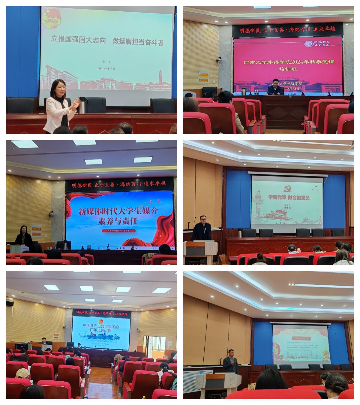 为切实加强入党积极分子对党的认知,强化思想觉悟,筑牢理想信念,全力培育担当民族复兴大任的时代新人,外语学院(高级翻译学院)于10月23日至10月27日举办第16期入党积极分子培训,共有64名入党积极分子参加。本次党课采用集中授课、自主学习等多种学习方式,让同学们学习党史、党章,深入学习党的二十大报告和党的二十届三中全会精神,关注时事政治,激励他们以党员标准要求自己,努力向合格的党员迈进。