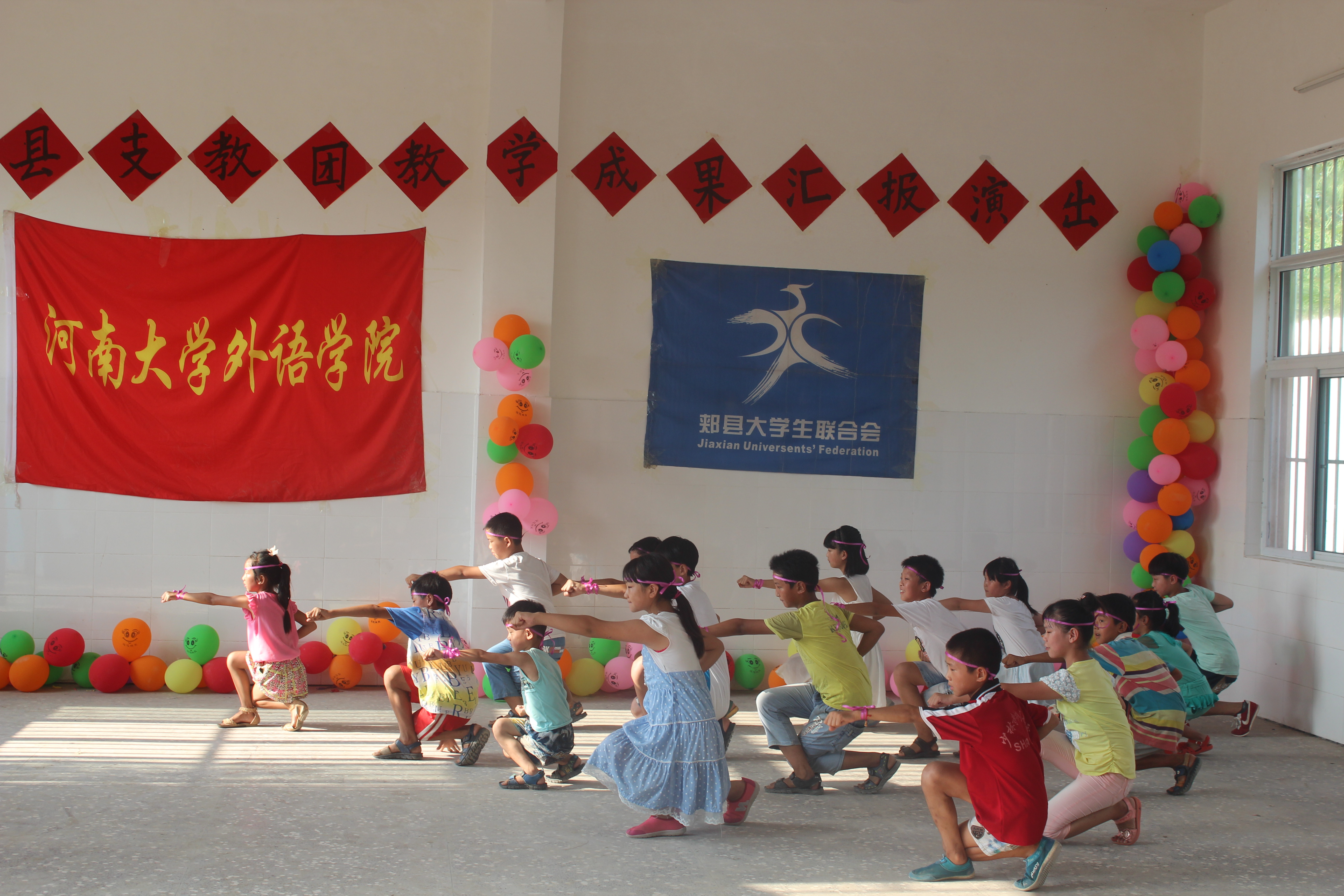 7月26日,河南大学外语学院“因爱之名,为心而行”郏县支教团举行教学成果汇报演出。汇演过后,标志着本次支教活动圆满结束。两周内,我们从挨家挨户宣传招收学生,到今天将教学成果展现给当地父老乡亲。我们的欢乐凝集在送孩子们回家的路上,认真板书上,半夜举行的工作会议上,孩子们的欢声笑语中。孩子们对志愿者老师的挽留与不舍,志愿者老师的辛勤付出与真挚情感都凝结在本次汇演中。