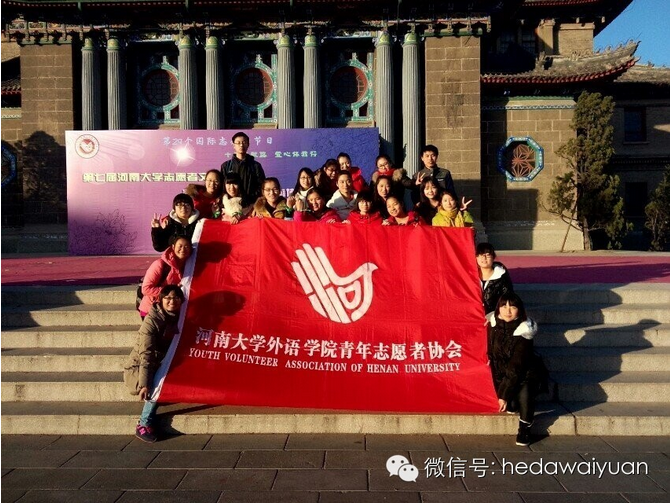 2014年12月4日我院青协参加河南大学青年志愿者文化节活动,并于当天14点在明伦校区大礼堂前同新老校区多个院系青协参加开幕式。