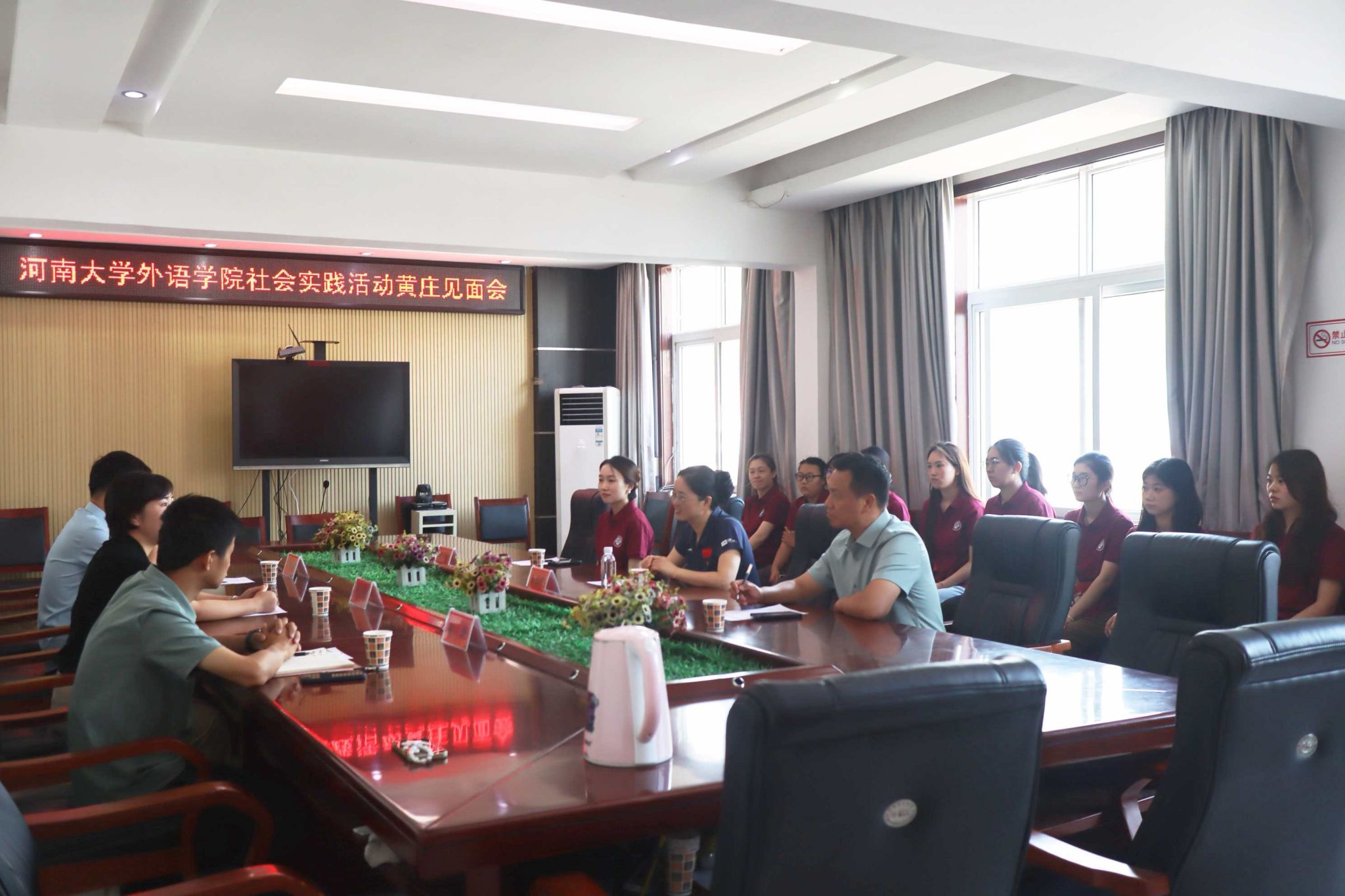 王玉珍一行受到我校黄庄乡党委、政府的热情接待。在见面会上,黄庄乡乡长、我校2008 届优秀校友王晓燕对王玉珍一行表示热烈欢迎。她指出,河南大学与嵩县渊源深厚,抗战办学期间,河南大学医学院来到嵩县,为当地教育、医疗事业作出突出贡献,结下深厚情谊;在脱贫攻坚关键期和当前乡村振兴阶段,学校通过智力、科技、惠农等方式,以实际行动支持嵩县人民。她热情介绍了黄庄乡的文化与自然资源、特色经济产业、文旅发展,希望外语学院与黄庄乡建立校地合作机制,鼓励学子扎根基层,助力学生培养和乡村振兴事业快速发展。